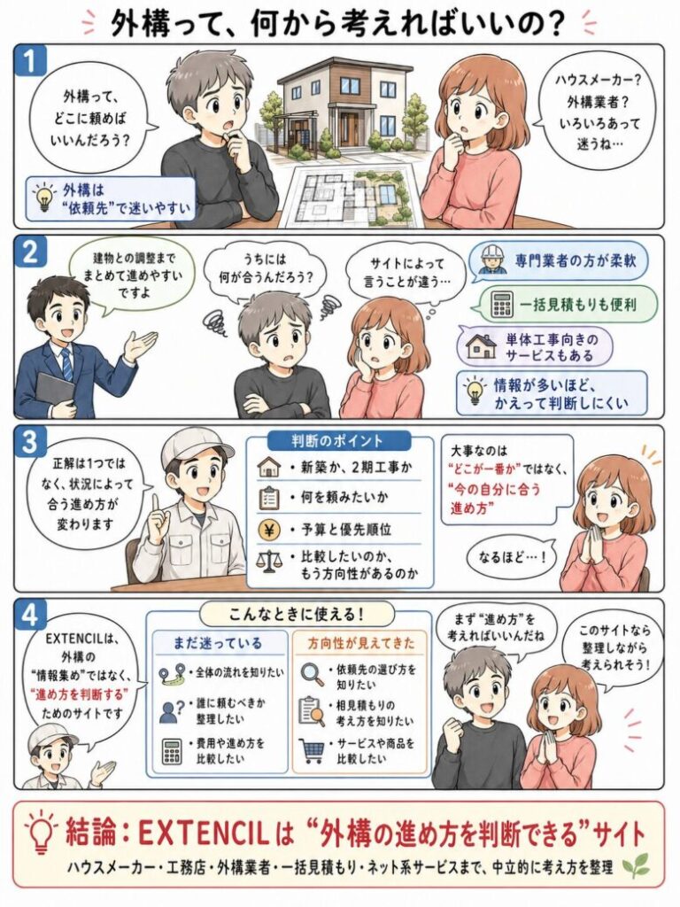 EXTENCILでは、外構工事の専門家の視点から「あなたにとっての最適解」を見つけるための情報をわかりやすく解説しています。