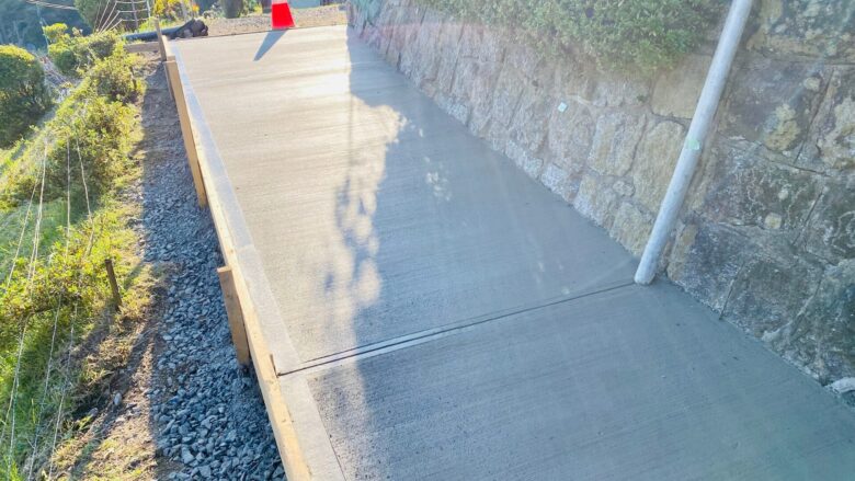 コンクリート工事は下地作りと型枠・目地設置に2日程度、打設(コンクリートを流し込むこと)に1日、養生として数日間の合計1週間程度は車をとめることができなくなるので、入居前に優先して工事することが多いです。