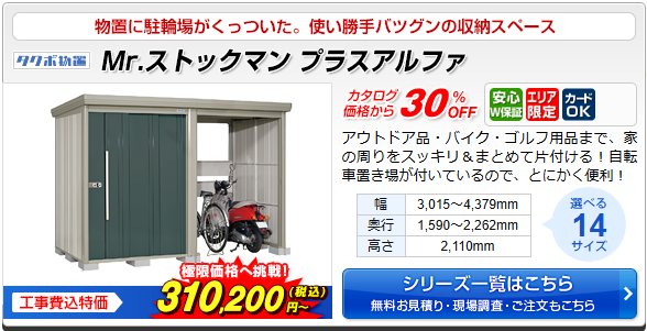 駐車場と一体型で使い勝手抜群 Mr.ストックマン プラスアルファ(タクボ物置)