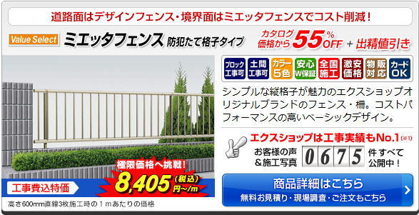 こちらも安い。たて格子タイプ ミエッタフェンス(ValueSelect)