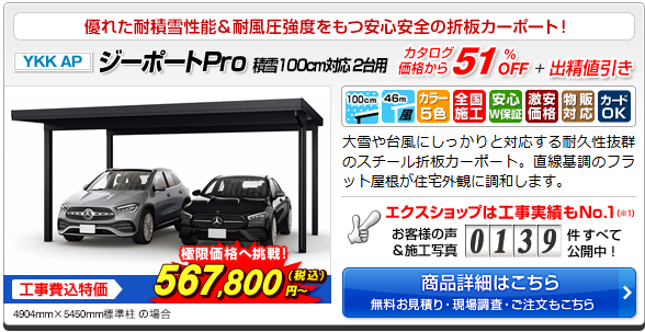 耐久性抜群!積雪地帯用カーポート ジーポートPro(YKK AP)