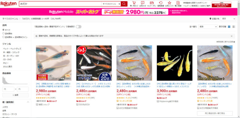 オークションサイト程ではありませんがECサイトの中のショップにも当たり外れはあるので、まずはどのショップからめだかを買うかを決めて、その中からほしいめだかを探すようにしましょう。