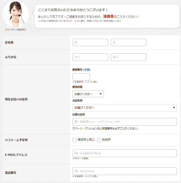 その後、氏名、住所、電話番号、メールアドレスなどの個人情報を入力します。